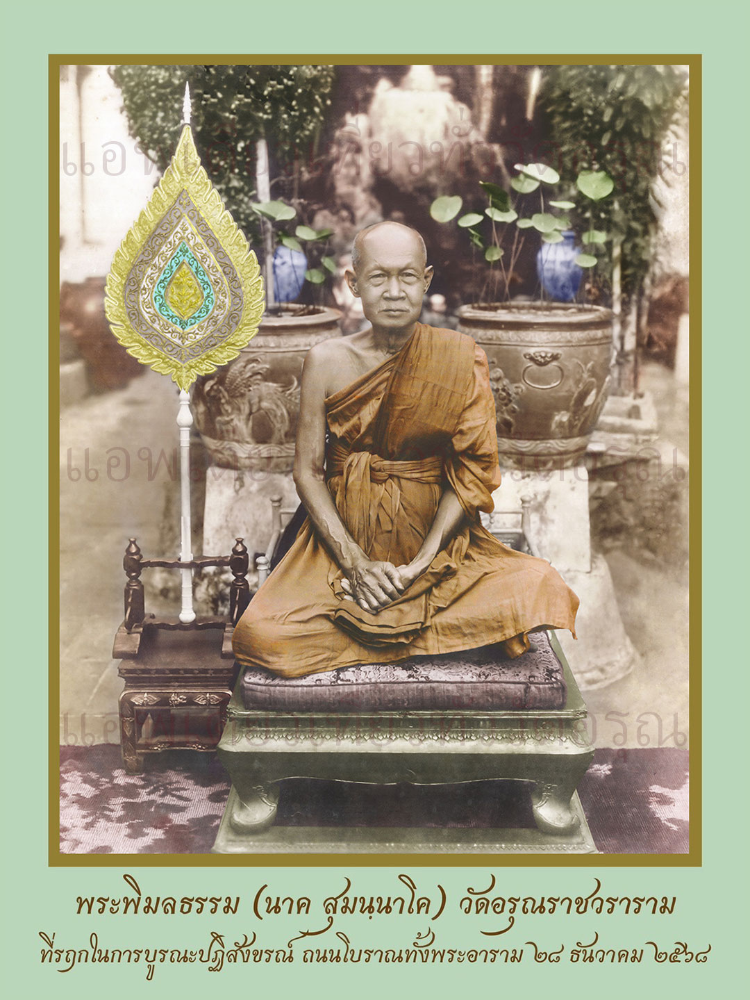 เพื่อเป็นการระลึกคุณงามความดีของพระเดชพระคุณหลวงพ่อ พระพิมลธรรม (นาค สุมนนาโค) อดีตเจ้าอาวาสวัดอรุณราชวราราม รูปที่ ๑๐ และเพื่อเป็นระลึกในการบูรณะปฏิสังขรณ์ถนนโบราณหมดทั้งพระอาราม โดยจัดสร้างภาพพระพิมลธรรม (นาค สุมนนาโค) อดีตเจ้าอาวาสวัดอรุณราชวราราม รูปที่ ๑๐ (สำเนาจากฟิล์มแท้) ทั้งหมด 4 รายการคือ