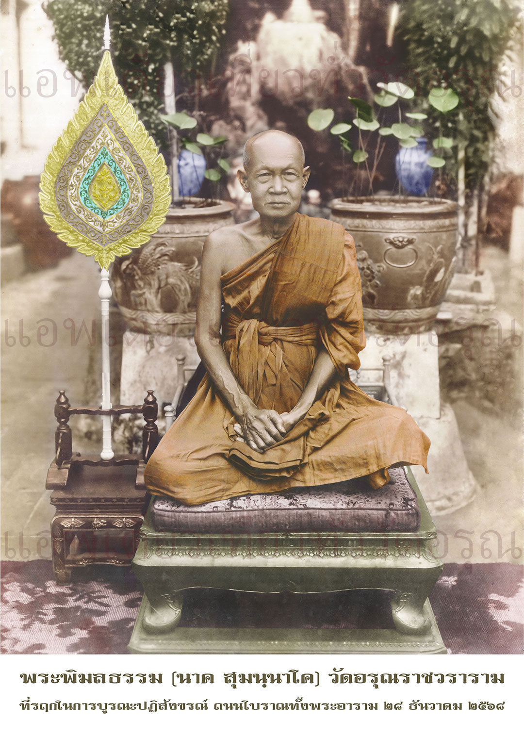 เพื่อเป็นการระลึกถึงคุณงามความดีของพระเดชพระคุณหลวงปู่ พระพิมลธรรม (นาค สุมนนาโค) อดีตเจ้าอาวาสวัดอรุณราชวราราม รูปที่ ๑๐ และเพื่อเป็นที่รฤกในการบูรณะปฏิสังขรณ์ ถนนโบราณทั้งพระอาราม โดยจัดสร้าง ภาพพระพิมลธรรม (นาค สุมนนาโค) อดีตเจ้าอาวาสวัดอรุณราชวราราม รูปที่ ๑๐ (สำเนาจากฟิล์มแท้) ทั้งหมด 6 รายการคือ